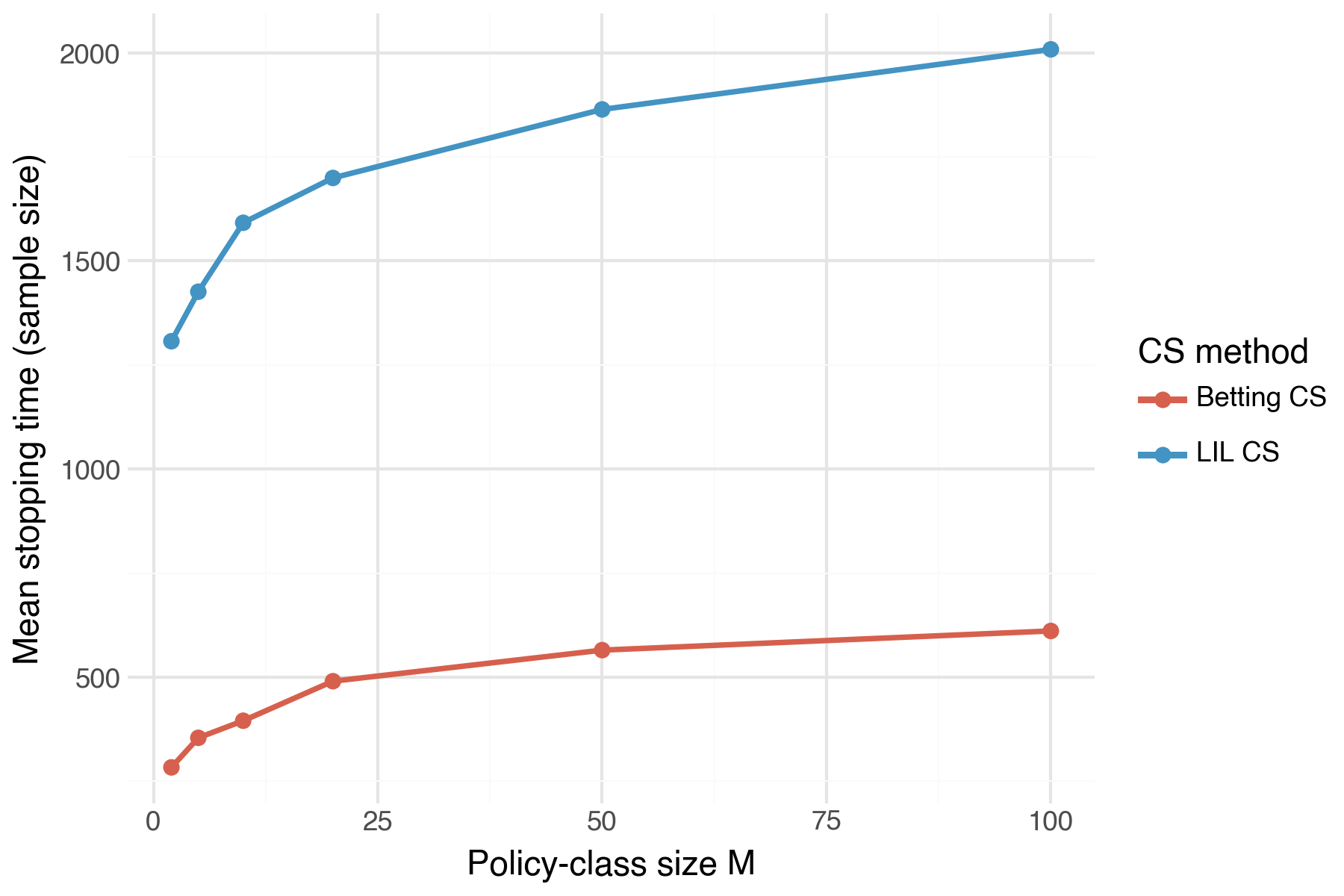 Demo 5 — Stopping time vs. policy class size \(m\)
